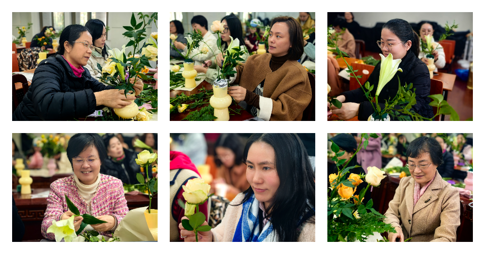 每一朵鲜花都蕴含着老师们对美好生活的向往,每一个花艺作品都以独特的形态展现了她们的个性与魅力。最后,大家共同合影留念,相机定格的瞬间,记录下了这充满快乐、美好且难忘的时刻,为此次活动画上了圆满的句号。