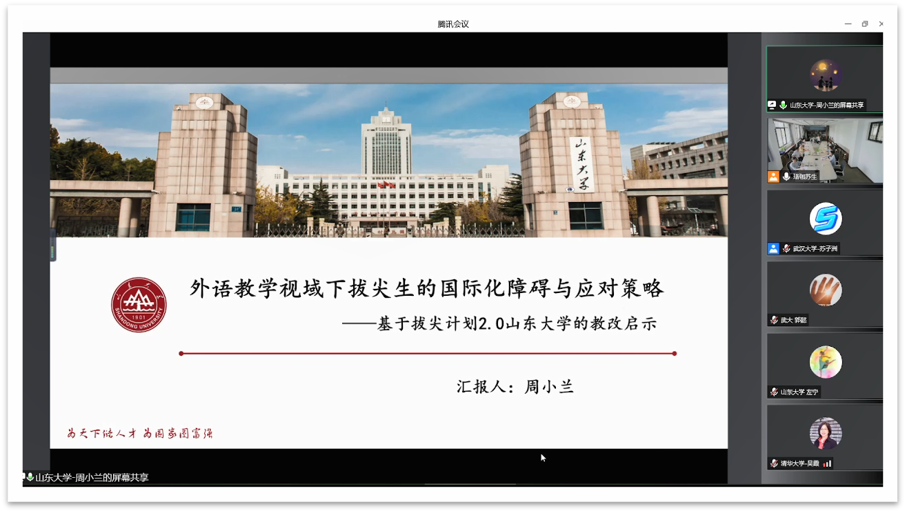 通过举办拔尖计划2.0全国线上书院武汉大学公共外语直播课与教学创新研究论坛主题活动,增强了兄弟院校同行在教学、科研和组织等方面的彼此交流,探讨了课程创新和教学研究等方面的合作意向。我们共同期待拔尖计划公共外语教学项目能够行稳致远,佳绩频传。