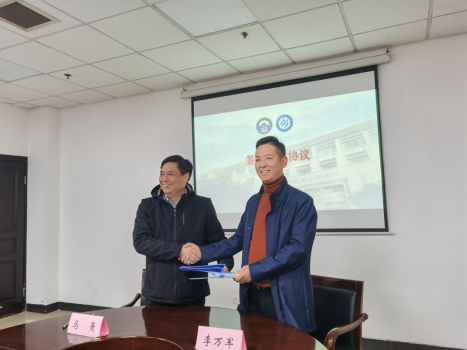在全体与会人员的见证下,武汉大学外语学院院长马萧与湖北省陕西商会会长李万军代表双方签订战略合作协议。