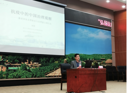 举行“弘扬抗疫精神 坚定爱国力行”主题宣讲会,邀请了政治与公共管理学院的刘伟教授为学院师生代表做了题为《抗疫中的中国治理观察》的报告。
