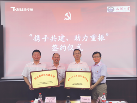 活动现场,在与会领导的共同见证下,Transn传神高校事业部经理张华与武汉大学外语学院党委副书记孙燕代表双方签订“携手共建、助力重振”合作协议,并围绕共建内容为“校企党组织共建基地”“翻译人才培养与实习实践基地”挂牌。双方通过党建结对活动带动校企合作,不仅联合开展党建活动、学习对方先进党建做法,同时也要广泛开展科研项目合作,实现互惠共赢。