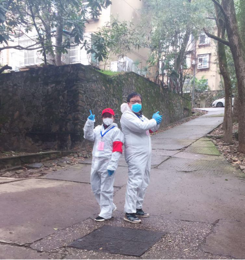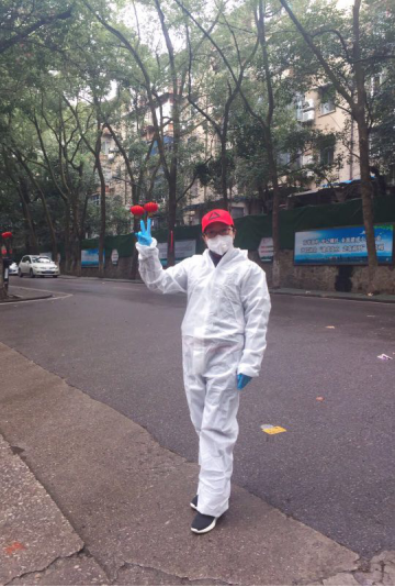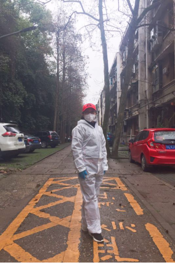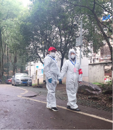吃过午饭,驱车前往武汉大学文理学部家属区,今天是我作为外语学院党员突击队队员,第一次参加武汉大学文理学部社区防疫志愿者服务活动。我刚到北三区12栋,远远就看见一个熟悉的身影在上坡处走动,他是上午值班的我的同事涂文革老师。涂老师热情地和我打招呼,迅速和另一位也在此值班的我的同事王珏老师联系,我们要交接工作了。我们来到停靠在北三区12栋四单元门外的温建科老师的车旁,和往常一样,温老师在家用遥控器打开了他的车后备箱,涂老师指导我这个“新人”更换防护服。他细心地为我挑选了一套小号的防护服,又拿出一双蓝色的橡胶手套,一边递给我,一边说:“蓝色的手套比白色的厚实、暖和,你戴这个。”换上防护服后,王珏老师也过来了,涂老师瞅着我俩说道:“这防护服有点欺负你们女生咧,你看我们这些大老爷们穿着蛮合身,怎么一到你们身上,平时觉得蛮好看的人现在完全看不出来了。”我和王老师相视一笑。可不是吗?冬款防护服是宽松型连体衣,上下一般粗,尤其是裤管,足有一尺宽,再好的身材也经不住这种直筒style啊。不过,涂老师这番话幽默、温暖,听着让人舒服。我不由得细细打量起他来,果真如此,防护服穿在他身上平整而熨帖,毫无违和感,竟比他穿便装时多出了几分精气神。