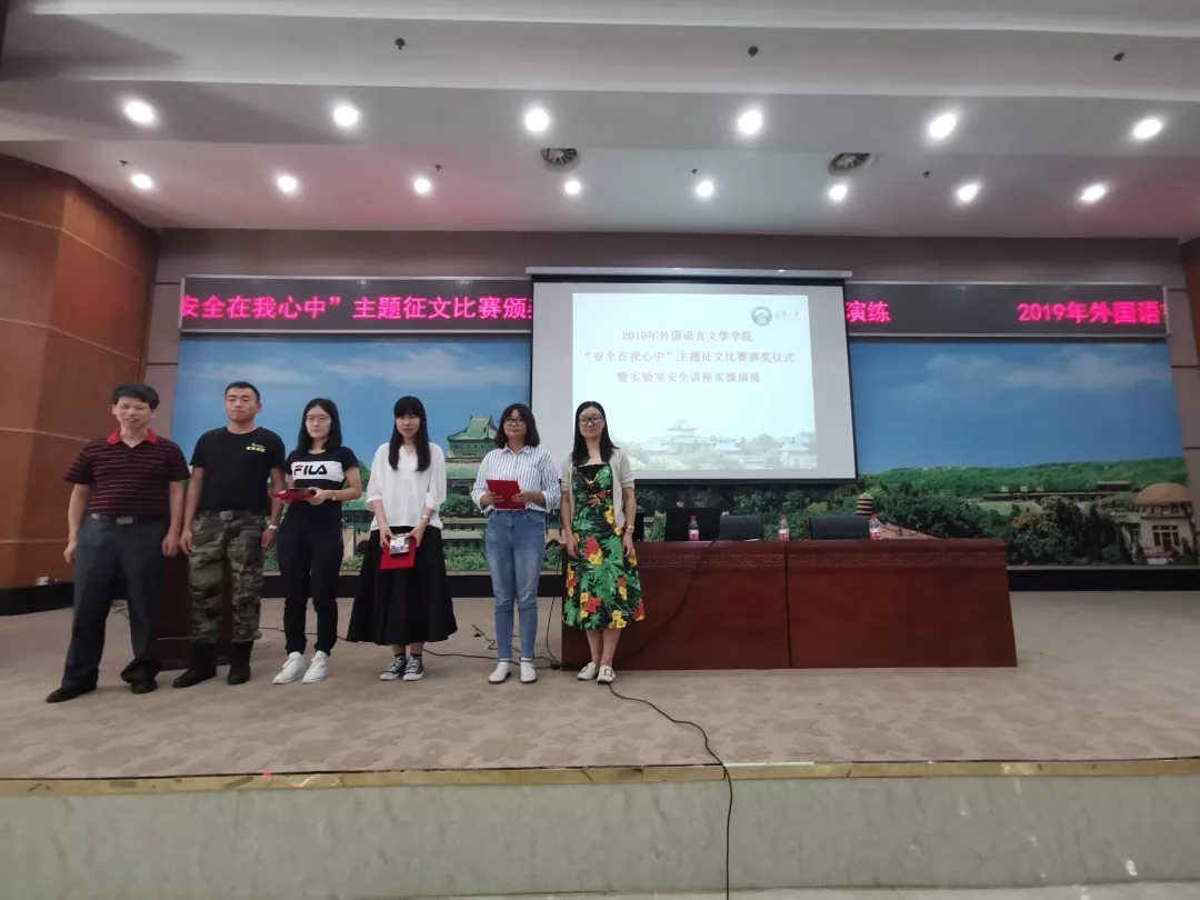 本次活动首先进行的是由外语学院电教实验中心举办的“安全在我心中”主题征文比赛颁奖仪式,获得本次征文比赛一等奖的同学为苏恒悦,获得二等奖的同学有黎乐昕、刘梅珊,获得三等奖的同学有钟雅贤、李玉希和赵晓轩。学院领导和老师分别为获奖同学颁发了荣誉证书和奖品。值得关注的是,本次安全征文活动获得了学院的大力支持,并给予了获奖选手十分丰厚的奖励,足见学院对学生安全工作的重视。奖品包括充电宝、蓝牙耳机和大容量硬盘。奖品自然可贵,但相信同学们在安全征文比赛中学习到的安全知识、培养起的安全意识更为珍贵,因为安全就是最好的礼物。