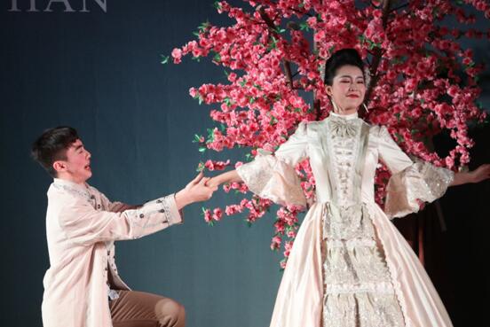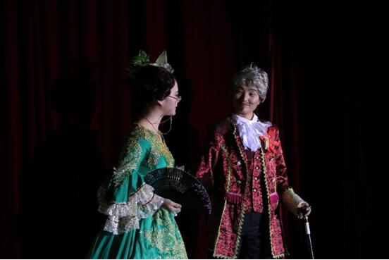 本届戏剧节的参赛剧目取材广泛,囊括了中西与古今。我校法语系的报送剧目选自18世纪法国古典喜剧大师马里沃的经典之作——《爱情偶遇游戏》(Jeu de l’amour et du hasard):富家小姐西尔维娅不满父亲奥尔贡先生擅自做主为自己定下婚约,遂决定与丫鬟丽塞特互换身份,以试探未婚夫——贵族公子德拉特,未曾想德拉特也用了同样的方法,让仆人阿尔干假扮自己考验女方。就这样上演了一出“上错花轿嫁对郎”的荒诞剧。错位的是人,不变的是情。最终,真爱战胜了一切,故事以男主爱上女主,男仆爱上女仆圆满结束。法语系选取的表演片段正是本剧高潮迭起的部分,互换身份的两对青年在父母眼光的注视下如何冲破外在与内心的双重束缚,勇敢追求自己的真爱。法语系领导对此次戏剧节的组织非常重视,赛前对剧目进行了精心的设计与编排,队员们更是铆足干劲,以必胜的决心投入备战,无数次的演练最终换来了完美的舞台演绎,整个表演行云流水般一气呵成,每个细节都恰到好处,将马里沃语言的生动、细腻与诙谐表现得淋漓尽致,保留古典庄严感的同时却又“笑”果十足,引得台下观众掌声阵阵,大呼入戏。