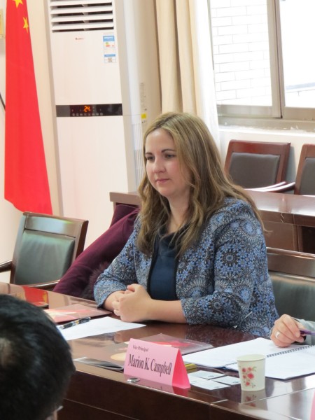 首先李斐校长致开幕词,他回顾了2017年武汉大学与阿伯丁大学在各方面的交流和合作,指出今年是交流最频繁的一年,取得了丰硕成果。接着阿伯丁大学副校长Marion K. Campbell发表了讲话,指出双方交流目前正处于黄金期,预期双方在各个领域进行更多的合作与交流。她注意到,阿伯丁与武汉大学在公共卫生等方面存在巨大的合作前景。随后,阿伯丁大学孔子学院英方院长Michelle Macleod对孔院2017年的工作做了总体报告。她总结了孔院今年所取得的成绩,明年的工作重点和可能遇到的挑战。成绩方面,孔院目前已陆续招收并培训了1750多名学生,吸引了五千余人参与中国文化活动,成功举办了中国新年庆典,传统中医体验和武汉人艺木偶表演等活动。孔院教学点已包括当地的大中小学,并已延伸到阿伯丁市周边城镇。武汉大学和阿伯丁大学孔子学院通过珞珈夏令营和学术讲座等形式进行了人员交流。明年工作重点是孔院办公楼的修缮,孔院成立五周年庆祝系列活动以及阿伯丁大学五月节等活动。遇到的挑战有不断扩大的受众人数与相对较少的工作人员之间的不平衡所带来的压力等。随后英文系主任朱宾忠,外语学院院长马萧也分别发言,参会人员共同广泛而深入探讨了今后双方在师生交流,人员往来, 召开武汉大学四所孔子学院联席会议,合作建立研究中心等方面的议题。最后,外语学院院长马萧做了总结,为此次会议画上圆满句号。