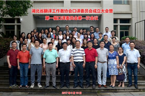 2017年6月10日,湖北省翻译工作者协会口译委员会成立大会暨第一届口译委员会第一次会议在武汉大学外语学院3008会议室举行。湖北省翻译工作者协会会长刘军平教授、副会长杨元刚教授、彭石玉教授、副秘书长马萧教授出席大会并发言。来自省内各高校和企事业单位近60名口译专家学者、在职译员参加了大会。