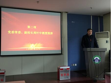 2点15分召开大会正式会议。首先校党委常委、副校长周叶中教授致辞。首先他代表校党委对海角社区