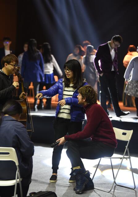 作为协办单位,对此次合作给予了大力支持。英文系成立了由系主任朱宾忠教授领导的工作小组,吸引了我校各个院系和年级的英语话剧表演爱好者参与报名,并在11月21日完成了初步选拔。筹备阶段的指导和排练工作由熊杰平、戴丹妮和张东燕三位老师负责。12月11日,西蒙•戈德温先生接手前期工作,完成演员挑选和角色分派,开始在武汉大学外语学院指导排练。此次活动全程由英国大使馆提供赞助,并由英国驻汉总领馆亲自指定和配备了专业的音响、灯光、化妆和现场伴奏团队。
