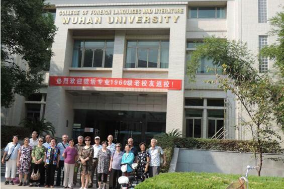2016年9月23日,武汉大学外语学院俄语系16位1960级老校友怀着对母校深深的思念,从国内外各地赶回母校,参加毕业51年的聚会活动。虽然校友们都已年逾古稀,但个个都精神矍铄,神采奕奕。51年后校友一行重又拜访了行政楼、老图书馆以及老斎舍,在当年生活过的辰字斋留下了合影。他们在校园里徜徉,感受校园变化,共叙兄弟姐妹情。