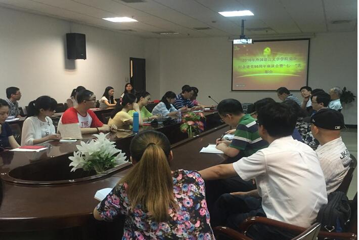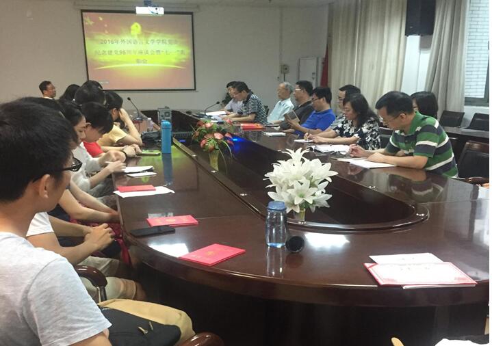 在3008会议室召开了“武汉大学外国语言学院党委庆祝建党95周年座谈会暨“七·一”表彰会”,外国语学院党委书记黄宏发、党委副书记胡浩和学院各党支部书记以及优秀党员参加了会议,会议由胡浩书记主持。