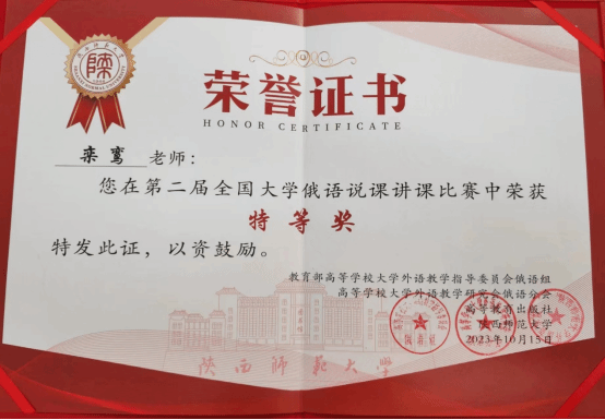 俄语系栾鸾老师斩获特等奖。