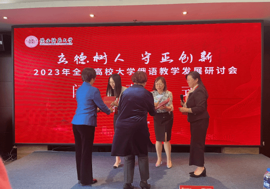 据悉,教育部高等学校大学外语教学指导委员会俄语组、高等学校大学外语教学研究会俄语分会于2023年10月13-15日举办“立德树人 守正创新——2023年全国高校大学俄语教学发展研讨会”,会议由陕西师范大学承办,高等教育出版社协办。为贯彻落实教育部《大学俄语教学指南(2021版)》提出的“立德树人”根本任务,不断深化大学俄语教学改革,助推大学俄语教学提质升级,大会同时举办“第二届全国大学俄语教学说课大赛”,来自中山大学、武汉大学、黑龙江大学、天津外国语大学等高校的俄语教师参加比赛。大赛要求基于指定授课内容进行教学设计,首先从教学目标、教学设计思路、思政元素融入点以及预期的教学效果等方面阐述教学设计,随后进行教学过程展示。
