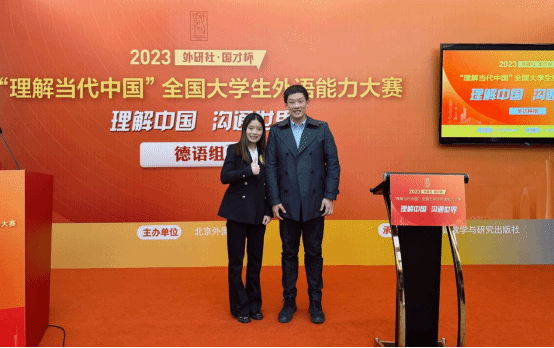 自本次大赛启动以来,德文系高度重视,积极动员本科学生及硕士研究生参与其中,并于2023年9月举行了学校选拔赛。在校选拔赛中,杨宇凤同学与2020级本科生阮辰璨在众多选手中脱颖而出,获得特等奖并成功晋级省赛。湖北省省赛于2023年10月举行,共设置阅读、翻译、写作与演讲四大板块,着重考察选手的外语综合能力。在指导教师张申威、徐琼星和包向飞的帮助下,二位同学在赛前认真备赛,在赛中沉着应对,展现了武大学子的风采。最终杨宇凤同学获得湖北省金奖,代表湖北省参加国赛,阮辰璨同学也获得了湖北省优胜奖的优异成绩。