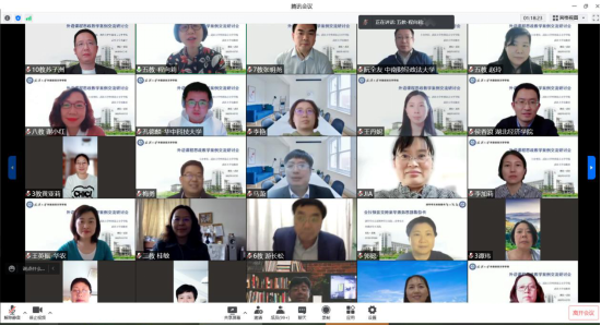 为全面落实教育部《高等学校课程思政建设指导纲要》精神,推动外语课程思政建设,4月7日下午,武汉大学外语语言文学学院和武汉大学出版社联合主办了 “外语课程思政教学案例交流线上研讨会”,探讨外语课程思政的有效实现策略。外语学院副院长程向莉主持,外语学院党委书记黄宏发、外语学院院长马萧,武汉大学出版社外语分社的谢群英社长参加了本次研讨会。武汉大学外语学院大学英语部所有教师和其他参与人员共计280多人加入研讨,并邀请了武汉地区专家老师和优秀骨干教师分享教学方案设计。大英部主任张明尧及副主任赵玲,李加莉,文芳分别主持点评。