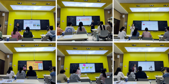 西班牙语系严炜老师用英西双语、秦剑老师用全西语、朱洁蓉老师用中文,热情洋溢地为我们掀开了地中海国度和世界西语的一角。唐军俊老师思路清晰地剖析段落,提炼语句,引导学生通过记忆回溯勾勒出文本的框架结构。张申威老师选取《德语语言学导论》中的“符号理论”节段,以象声词导入,一颗红心所系,生动地讲解着本该枯燥的语言符号和符号学模型。毛志文老师紧抓“兴趣与爱好”,师生共读课文。“劳动最光荣”,姜俊钦老师的课堂主题鲜明。黄雨老师使用“雨课堂”,并邀请现场的老师们扫码共同参与课堂互动,通过对比揭示议论文写作如何提出见解、驳斥观点。钱妍老师关注教学理念和教学设计理念,通过比较徽派建筑与哥特建筑的结构及构建功能,解析词汇,促进学生形成思辨的涵养。石旸旸老师从中日人民耳熟能详的诗句引入《万叶集》,使学生逐步领会和掌握历史语言学的基本方法。QI WANG放缓节奏,以纯正的英式英语引导现场的师生们进入语素构成的语言学世界。胡逸蝶老师通过茶道文化进行日语教学,师生互动热烈,寓礼仪文化于语言教学之中。