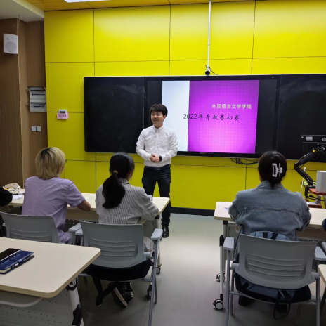 本次比赛共有12位青年教师参与角逐,大学英语部唐军俊、黄雨、钱妍,英文系Qi Wang,法文系姜俊钦,德文系张申威,日文系石旸旸、胡逸蝶,俄文系毛志文,西班牙语系严炜、秦剑、朱洁蓉等参赛教师根据抽签号顺序依次上台进行20分钟授课。