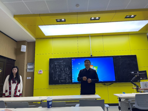 参赛教师结束授课后,由督导组组长郑文东老师对比赛整体作点评。郑文东老师表扬参赛老师们课前准备教案充分,教学环节完整,尤其是张申威等几位老师在授课中注意线上线下互动;再者,教学前辈的指导必不可少,譬如日文系主任曾丹老师亲自到场指导和鼓励石旸旸老师和胡逸蝶老师。同时,郑文东老师也指出青年教师在授课时也需要板书设计等细节。