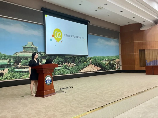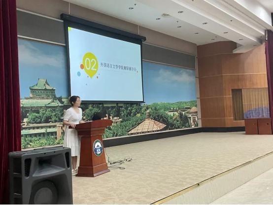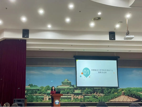 见面会伊始,周翠芳老师首先代表学院欢迎各位研究生新生的到来,成为珞珈山的新主人。她深入剖析“研”“究”“生”三个字的内涵和外延,在阐释研究生生活的同时对同学们寄予殷切的希望。她指出,“研”即为钻研,要充分利用学校的资源,广泛学习各领域知识,努力成为“外语+”人才;“究”即为探究,要不断琢磨、不断探索,开拓学术的空间;“生”即为生活,作为生活在珞珈山下的新人,同学们应具有强烈的好奇心和求知欲,深培文化底蕴,厚植爱国情怀,讲好中国故事,传播中国声音。
