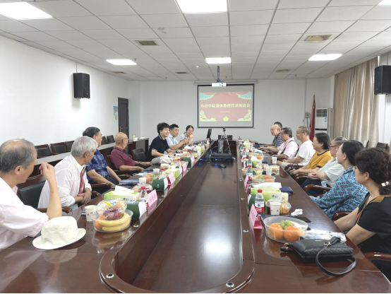 (通讯员:蔡敏)9月30日下午,外语学院在3008会议室召开退休教授代表座谈会,邀请从学院英、俄、德、法、日、翻译和大学英语部退休的12位教授代表出席,院党委书记黄宏发、院长李圣杰认真倾听老教授的诉求和对学院离退休工作的意见建议,虚心求教,请老教授们畅谈感想体会,为学院发展建言献策。院党委副书记周翠芳主持座谈会。