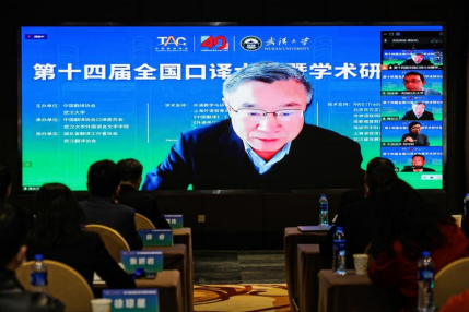 承办的第十四届全国口译大会暨学术研讨会以线上线下结合的方式在武汉大学举办。来自国内外各高校、研究机构、企业等相关机构的近200位口译教学及研究者参加会议,围绕“面向国际传播的口译实践、教学与研究”主题进行了深入的研讨交流。