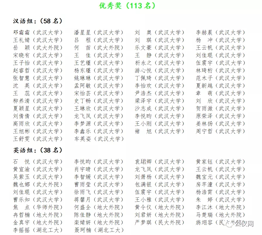 请获得一二三等奖和优秀奖的所有同学务必加入笔会交流群604755619,关于证书领取等事宜会在该群发布。获奖者如若姓名有误,可在群里联系管理员反映或与译协秘书处(电话:85800191)及时联系更正。