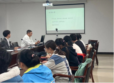 修教授将视角集中在中日汉字交流的文明互鉴这一领域,剖析了汉字与日语汉字之间互相的影响,以及西方文化对于中日两国“新汉语”的形成和发展产生的作用。修教授举出自己在经历日式寺庙婚礼时所朗读的“佛经”的事例,引人入胜地给大家展示了万叶假名、日语汉字和中文千丝万缕的联系。最后,修教授创意性地通过文明互鉴的视角解构跨文化交际,将其分为“中国声音”“日本声音”以及在中日互相需要听到彼此声音的当下“如何传递中国声音”三个板块。在时代立场下修教授呼吁武汉大学日文系的学子们通过孜孜不倦的学习,让世界听到更好、更强的中国声音。
