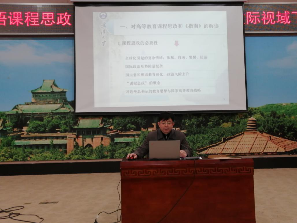 2021年3 月11日下午两点,大学英语部在外语一楼报告厅举行主题为“跨文化交际视域下的大学英语课程思政”的讲座,讲座由汪火焰教授主讲。大学英语部副主任赵玲主持讲座。