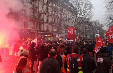 12月5日在法国巴黎拍摄的罢工游行现场。(图片来源:新华社)