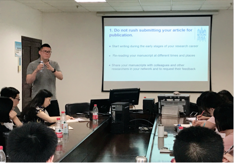 ,在3055会议室进行了主题为“七条在SSCI期刊上发表学术论文的建议”的学术讲座。此次讲座由外语学院英文系与外国语言研究所举办,由英文系张妍岩教授主持,出席讲座的还有来自英文系的多位老师以及海角社区
