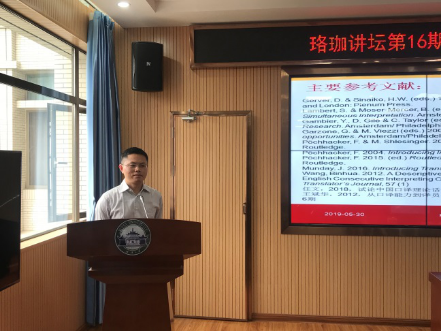 2019年5月30日上午,英国利兹大学王斌华教授应邀莅临武汉大学外语学院,作客珞珈翻译讲坛,在4016同传室做了题为“国际口译研究的脉络与动态”的学术讲座,外语学院院长马萧教授、刘军平教授、翻译系主任熊伟教授、黄敏副教授、黄莉副教授、刘莉琴老师和罗菁老师等海角社区