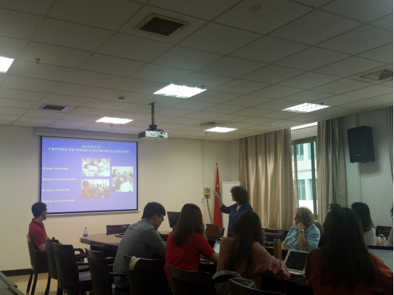 5月16日下午14:00, 法国国立图尔大学Hélène Escudié女士为法语系师生带来了一场生动且实用的讲座。她重点介绍了位于法国国立图尔大学的语言资源中心,并用简洁的语言解答了法语系师生的许多疑问。
