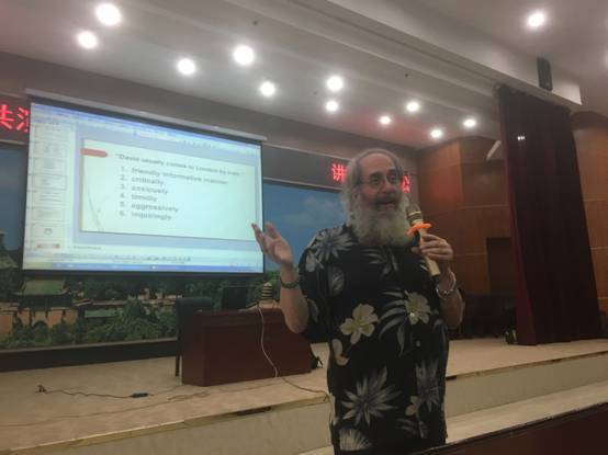 9月28日下午,中央民族大学教授,外研社杯全国英语演讲大赛总决赛提问评委马克•力文(Mark Levine)博士应外语学院大学英语部邀请,在外院学术报告厅做了一场题为How to Be a Great Speaker的讲座。外语学院副院长游长松副教授,大学英语部全体教师以及武汉大学演讲团队师生参加了讲座。