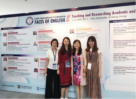 英文系邓鹂鸣教授带领刘庆荣、刘京、周韵三位博士研究生参加2017.6.1-3日由香港大学主办的Teaching and Research Academic and Professional English国际学术会议,此次会议为本领域最高规格的全球学术盛会,来自世界各地500多名学者参会,蜚声国际学界的大牌知名专家John Swales、Vijay Bhatia、Ken Hyland、John Flowerdew、Ann Johns、Janet Holmes等应邀出席做主旨报告;邓鹂鸣教授及其三位博士研究生分别就学术语篇中self-mention、lexical bundles、citation behavior现象作分场研究报告,所作报告得到了知名专家John Swales、Vijay Bhatia、Ken Hyland、John Flowerdew、Ann Johns及有关参会学者甚高评价与肯定,此行学术参会收获了不少,同时很大程度上扩大了武汉大学学者在国际学术平台上的积极影响。