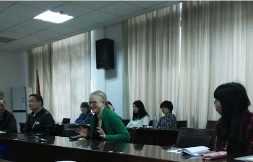 讨论阶段,英文系博士生与温卡探讨了“创伤、流散、记忆”这三者的内在逻辑关系与开展文本研究的可能性;接着,来自芬兰的外国留学生也好奇地询问温卡她作为西方人选择华裔流散文学作为研究课题的原因,温卡很高兴地和她分享自己初次到香港,走在到处都是华人的街上突然认识到自己如此不同的体验,这激发了她后来想进一步探寻少数族裔在西方白人主流群体中的身份定位的热情。而留学生也坦言,来到中国后,她产生了留在中国,扎根中国的想法。在场师生用掌声感谢温卡的精彩分享,会议在一片欢乐的氛围中结束。