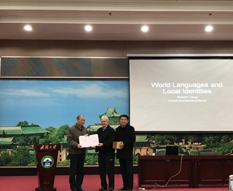 (通讯员:董彤彤)2017年3月21日下午两点,来自威斯康辛-麦迪逊大学语言学系的Richard F. Young教授莅临外语学院举行讲座,主题为“World Languages and Local Identities。武汉大学教师发展中心副主任石兢教授和学院副院长游长松教授参加了本次讲座,并代表学校为Richard Young教授颁发了证书。大学英语部主任程向莉副教授代表学院主持讲座并致欢迎辞。大英部全体教师和部分学生聆听了本场讲座。