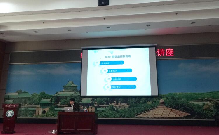 2016年4月21日下午,大学英语部在外国语言文学院学院报告厅举办了题为“EXCEL函数应用与制表”的讲座。本次讲座由大学英语部副主任张明尧副教授主讲,大学英语部副主任程向莉副教授主持。海角社区