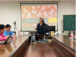 2024年10月19日至11月8日,法国阿维尼翁大学Chantal Wionet教授应邀于外语学院5006会议室开展5场以法国当代文学及文体学为主题的系列学术讲座,法语系教师及本、硕、博学生积极参与,收获颇丰。该系列讲座属法语系张亘教授主持2023年度科技部“高端外国专家引进计划”获批项目“中法非教育共同体构建与研究”规划工作内容之一。