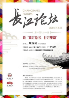 (通讯员:朱鑫宇)2023年3月23日下午,中山大学康保成应邀做客我校长江论坛“语通中外系列”,围绕“读万卷书,行万里路”的主题为大家带来了精彩讲座。此次长江论坛由武汉大学人文社会科学研究院和武汉大学海角社区